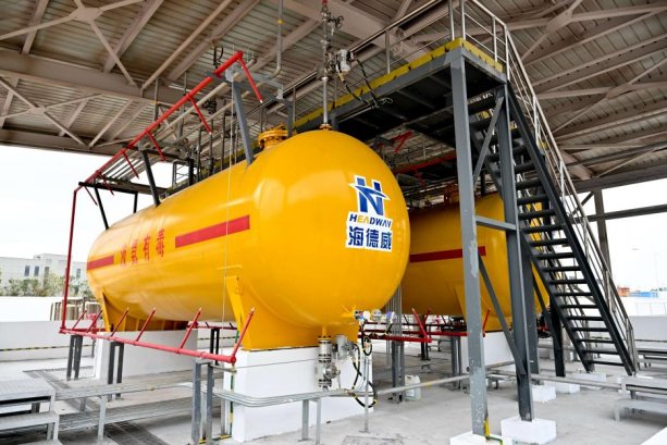 據(jù)悉,海德威此次作為項(xiàng)目總包方,以“交鑰匙”工程模式承擔(dān)了氨燃料供給系統(tǒng)的整體設(shè)計、核心裝備集成及工程化交付工作,構(gòu)建了覆蓋燃料儲運(yùn)、調(diào)節(jié)控制、安全管理及運(yùn)行支持的完整系統(tǒng)解決方案,提供涵蓋氨燃料儲罐、氨燃料供給模塊、卸車壓縮機(jī)、氨燃料輸送泵、氨氣相處理系統(tǒng)、可燃?xì)怏w探測及雙壁管在內(nèi)的整套全流程定制化解決方案。作為面向?qū)嵈瑧?yīng)用的重要平臺型項(xiàng)目,該測試平臺嚴(yán)格按照船用產(chǎn)品標(biāo)準(zhǔn)設(shè)計建造并滿足陸地驗(yàn)收要求,海德威在其中的角色不是單一配套商,而是圍繞平臺運(yùn)行目標(biāo)進(jìn)行系統(tǒng)拆解、接口統(tǒng)籌、模塊集成和工程交付的組織者。